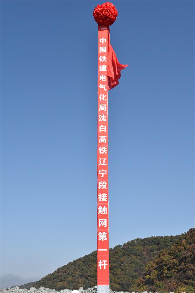 沈白高鐵遼寧段接觸網(wǎng)第一桿成功組立